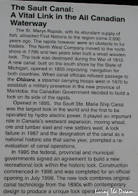 Inside the Visitors Centre...top of the photo the black lettering says "You are here" The locks on the Canadian side are no longer used by freighters. The bottom of the photo shows the locks on the US side in Sault Ste Marie, Michigan that can handle the 1000' freighters.Model showing how the lock works...