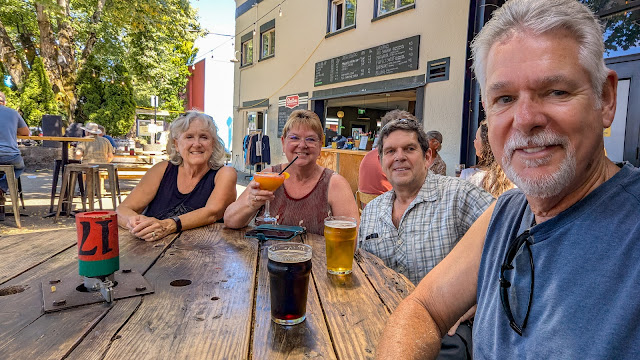 Steve and Dave had the little trailer all set up in a site across from us by the time Les and I got back. After getting the groceries put away, we sat outside, had a bite to eat for lunch, and chatted for a bit...and then headed up to the Gladstone Brewery for a couple of cold ones...